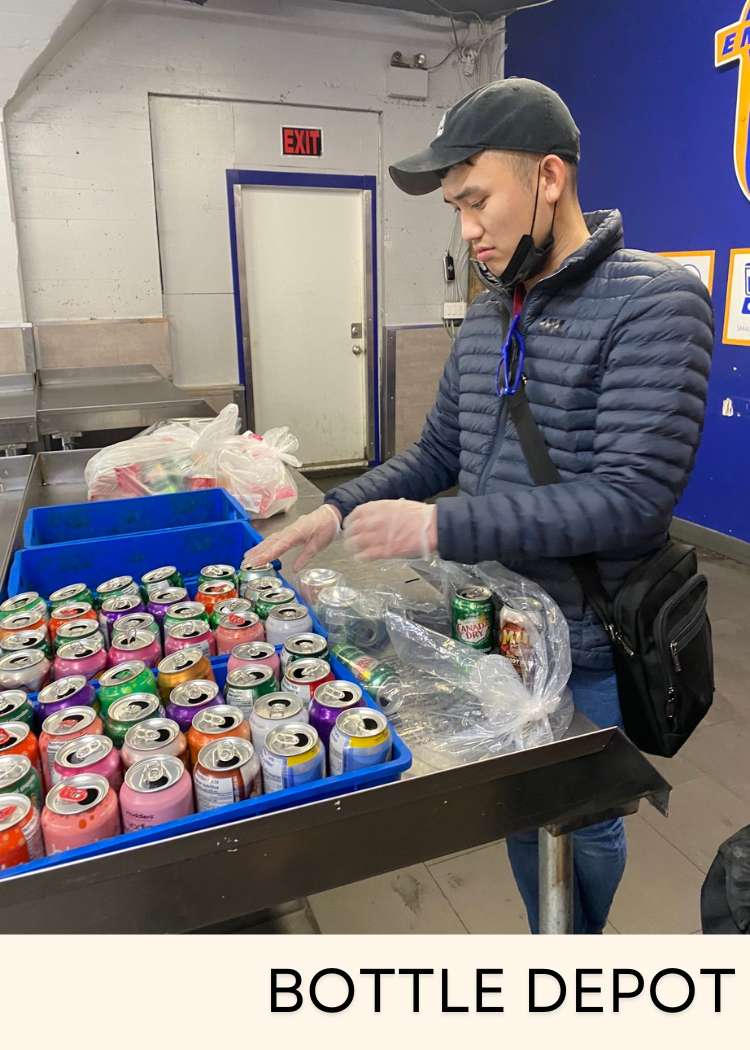 He takes a bag filled with bottles and pop-cans recycled in PASS and delivers them to the bottle depot.